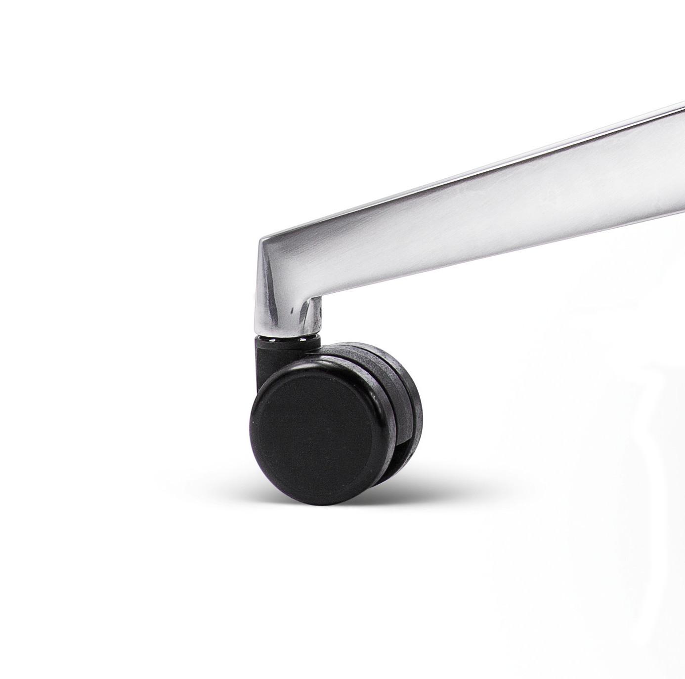 Die Rollen Ihres Bürostuhls können Sie schnell und einfach selbst austauschen. Ziehen Sie dazu die alten Rollen aus dem Drehkreuz. Sollte ein Stift in der Basis stecken bleiben, können Sie diesen mit einer Kombizange herausziehen. Stecken Sie anschließend die neuen Rollen vollständig bis zum Anschlag ein. Falls nötig, verwenden Sie einen Gummihammer, um die Rollen zu fixieren.